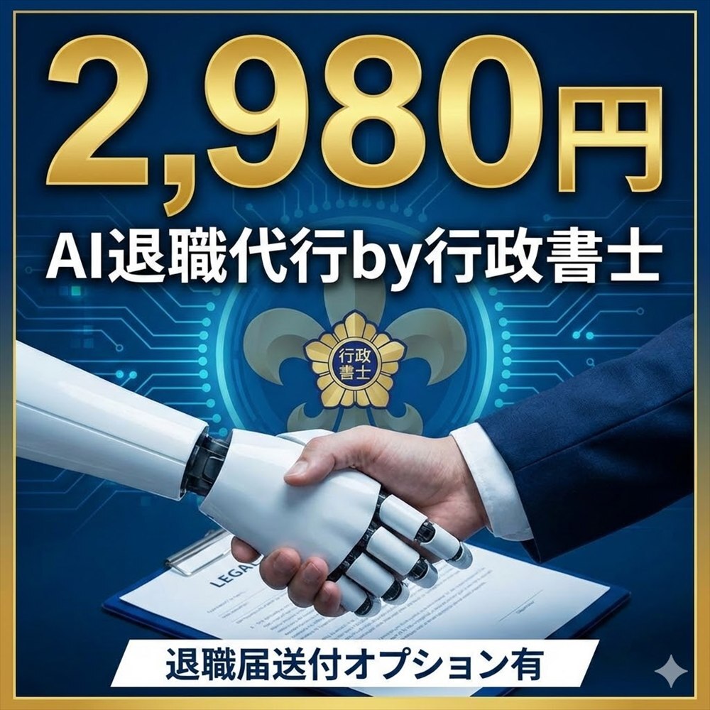 | ⑥AI退職代行 | 2,980円 | 行政書士 | × | 〇 | × | × | × | AI対応 |